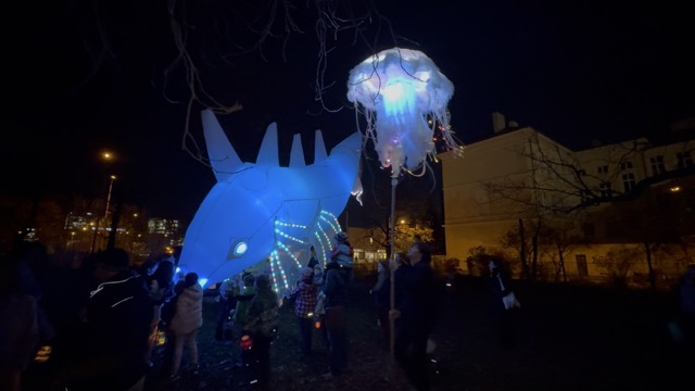Na zahradě školy se sešli rodiče, děti, pedagogové a hosté, kteří si vyslechli zpěv dětí, měli se možnost občerstvit, zahradou prošel lampionový průvod a velkým překvapením pro všechny byla velryba a medúza, která proplula nad hlavami účastníků...